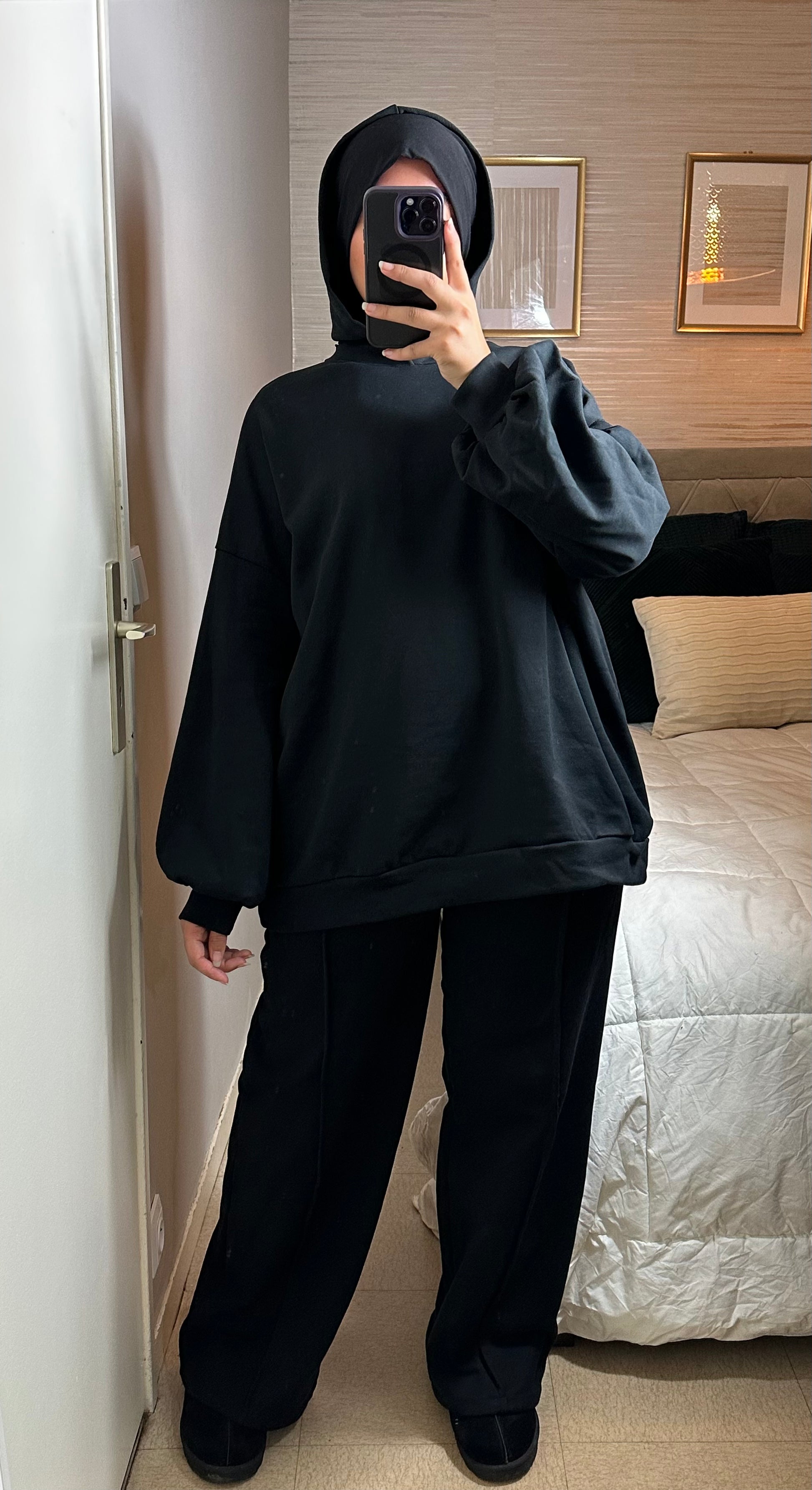Cet ensemble noir est à la fois tendance et confortable. Le tissu de qualité vous apportera un confort incomparable, tout en étant à la pointe de la mode. Idéal pour toutes occasions, il est le choix parfait pour un look décontracté et stylé.